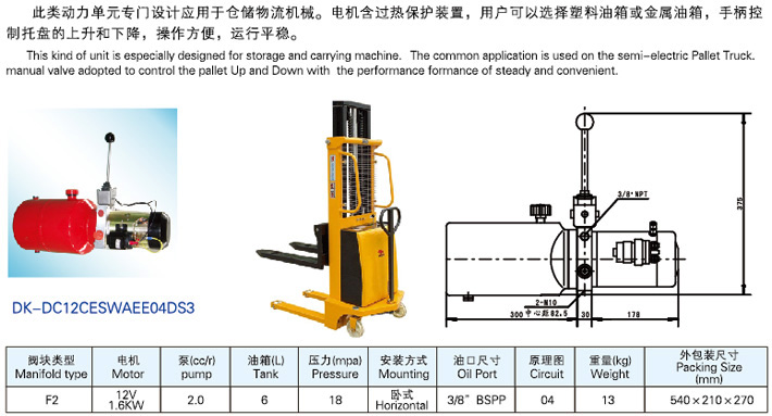 半电动堆高车专用液压动力单元