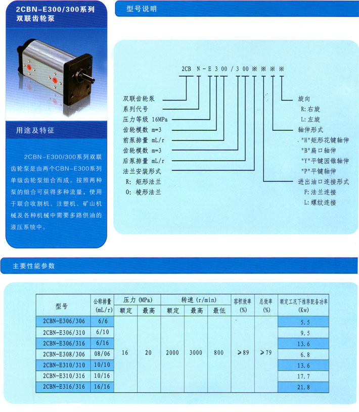2CBN-E300/300系列双联齿轮泵